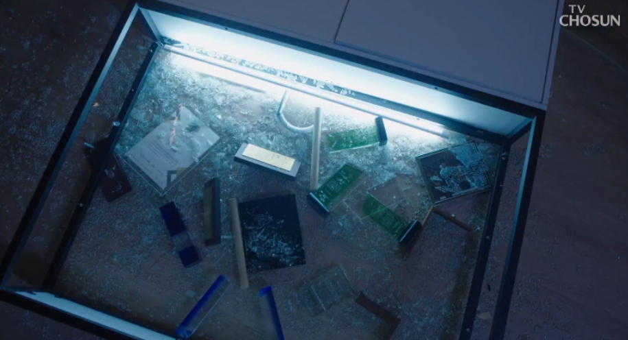 재원은 직원들이 모두 퇴근한 후 회사에 남아 잠시 숨을 돌리고 있는데 갑자기 밖에서 이상한 소리가 나서 나가보니, 재원이 받았던 상패를 전시해놓은 장식장 유리가 깨져있고  낮에 스토커 한테 받았다가 버린 꽃다발 사진과 함께 이상한 문자가 옵니다.