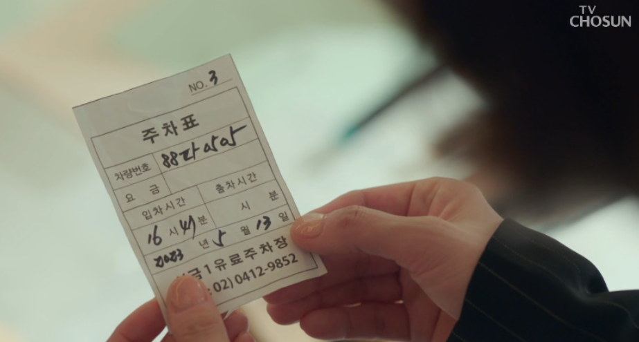 경찰조사가 시작되고 관련기사가 나오자 재원은 회사 성공에 흠집이 생길까봐 경찰수사 중단을 요구 합니다. 그리고는 혼자 조용히 사건에 대해 알아보는 재원은 사무실에서 범인이 흘리고 간듯한 주차표를 발견하고 주차장으로 가서 차를 확인합니다.