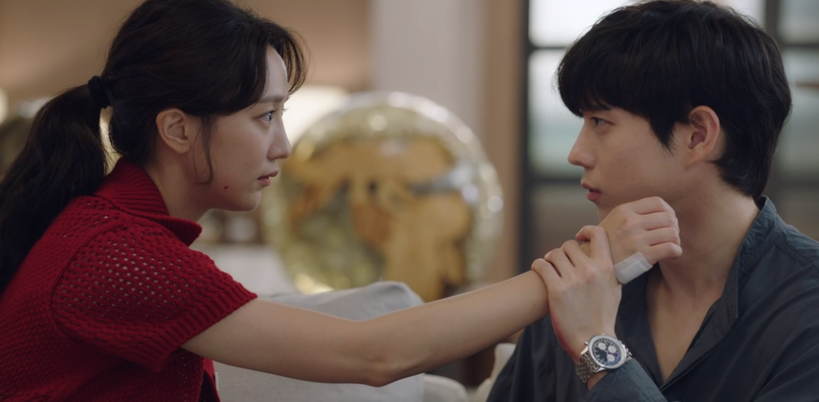 이야기를 나누다가 석철환을 만났다고 이야기 하는 영화. 석철환이 영화에게 했던 이야기는 감추고 그냥 너를 알던데 ?하면서 우연히 마주친게 다라며 넘어간 영화는 석철환이 말했던 상처가 진짜 있는지 보려고 준오(도하) 목의 상처를 보려합니다. 반사적으로 방어를 한 준오, 하지만 영화에게만은 순순히 상처를 보여줍니다.