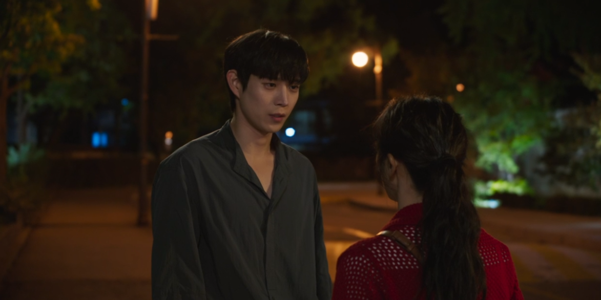영화가 위험할지도 모른다며 장실장을 통해 경찰에 신고하라고 하고 영화의 집을 나온 준오는 영화의 집 근처 공원에서 넋이 나간 듯 앉아 있는 영화를 발견합니다.  영화의 충격받은 모습을 보고  말없이  뒤따라 걷을며  준오는 영화를  안타까워 합니다.