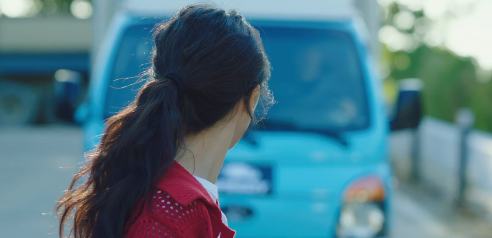 준오는 석철환을 찾으러 간 사이 상태가 이상한 정이슬이 다가오고 달리는 트럭이 나타나자 영화를 차로 밀어버립니다.