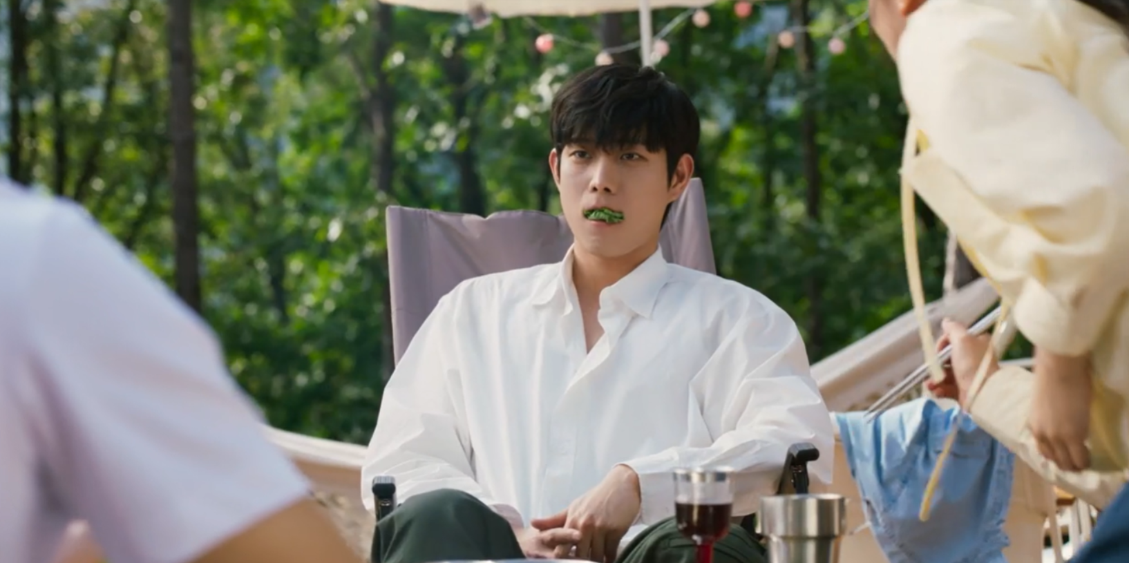 민오가 열심히 구워온 고기도 먹지않고 심드렁하게 앉아 있는 준오의 입에 고기를 넣어버린 영화.