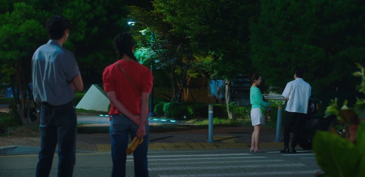 드디어 여행 당일, 길을 떠나려는데 준오는 집근처에서 숨어있는 정이슬을 발견하고는 영화 모르게 정이슬을 쫒아갑니다.