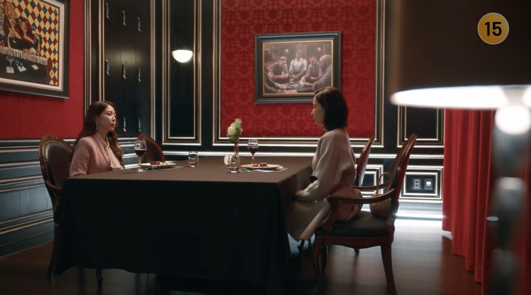 지원이 할말은 다했다며 먼저 일어나려고 하자 와인잔을 깨뜨리며 지원에게 유지혁이 U&K후계자인것을 알고 접근한것처럼 이야기 하고, 지원은 기죽지 않고 자신이 그러면 남도 그러는 줄 아냐며 대꾸하고 나와버립니다.