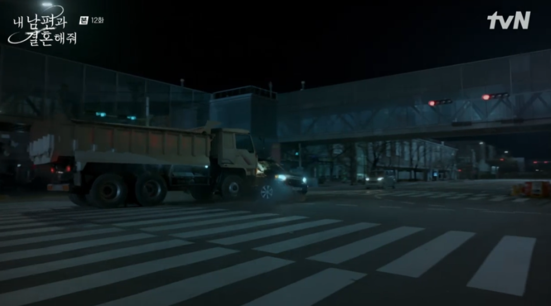 한바탕 아빠 앞에서 눈물을 쏟고 집으로 돌아가는 길..지원에게 덤프트럭이 돌진을 하고, 덤프 트럭을 막기 위해 지혁의 차가 지원의 앞을 가로막습니다.