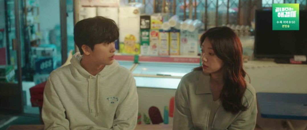 잠자리를 챙겨주는 하늘에게 아이스크림이나 사먹자고 이야기하고 괜찬다며 거절했던 하늘은 자신의 방문앞에 있는 엄마를 피하려고 결국 정우를 따라 아이스크림을 먹으러 나옵니다. 친구랑 이렇게 밤공기를 쐬니 좋지않냐는 정우의 이야기에하늘은 우린 친구가 아니라 그냥 동창이라며 선을 긋습니다.