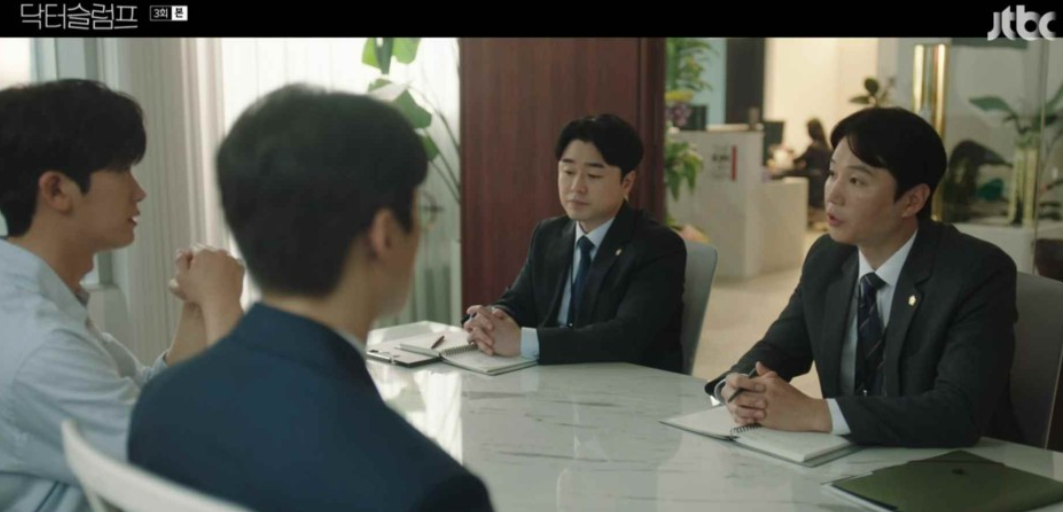 소송준비를 하고 있는 정우와 변호인단들. 병원에서 발견된 헤파린 병에서 정우의 지문이 발견되었지만 그것만으로는 실형은 어려울 것 같다고 이야기 해줍니다. 다행히 2차 공판때 수술당시 같이 있었던 마취과 의사 강진석 원장이 증인으로 출석하기로 했다며 도움이 될거라고 합니다.