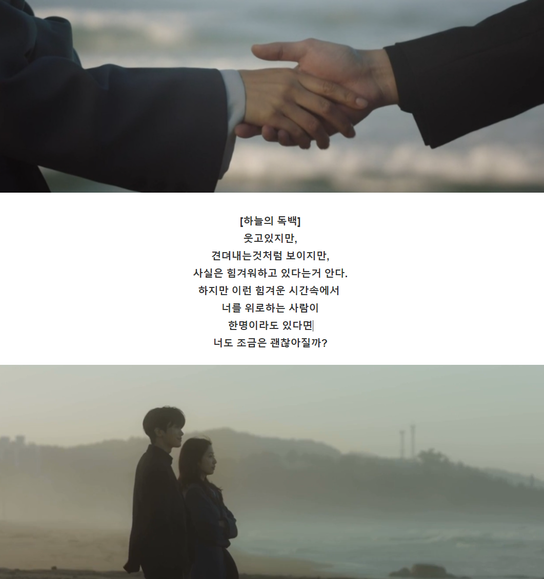 해가 뜨지 않는 바다를 바라보며 정우는 하늘에게 고마움을 느끼며 솔직하게 친구 하자고 이야기 합니다.
