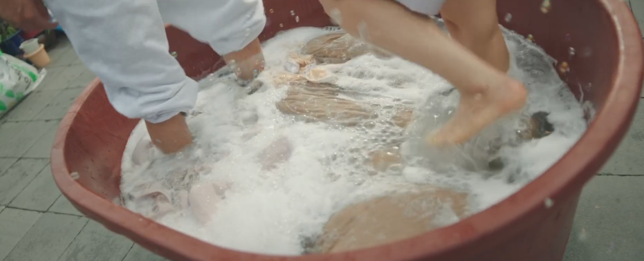이불을 자주빨아야 집진드기가 안생기고 숙면에 좋다며 옥상에서 함께 이불빨래는 하는 하늘과 정우.