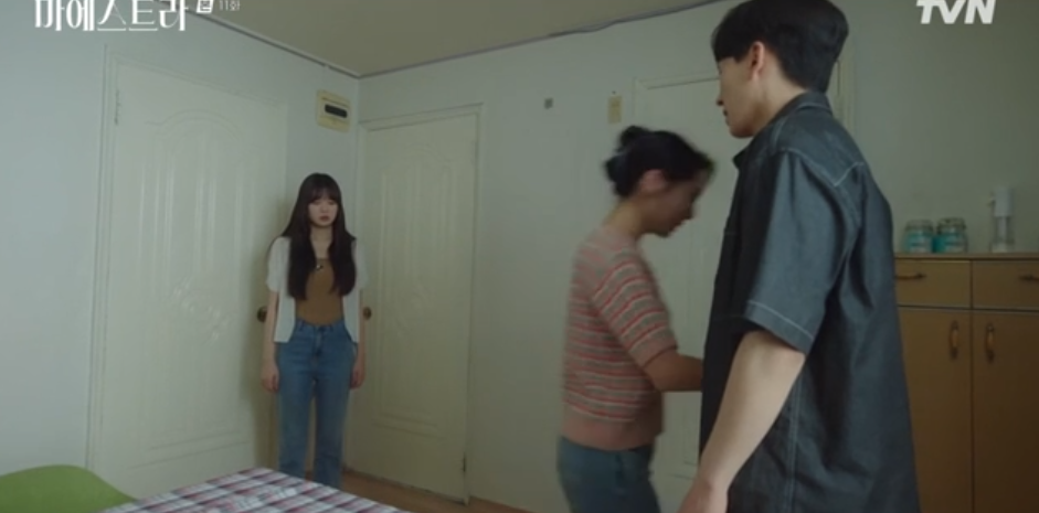 정재는 조카 태호한테 전화를 하는데 그시각 루나네 집에 있던 태호. 나중에 받겠다며 정재의 전화를 안받고 있는 태호의 머리를 누가가 화분으로 내리치고 태호가 의식을 잃고 쓰러지면서 마에스트라 11회는 끝이 납니다.