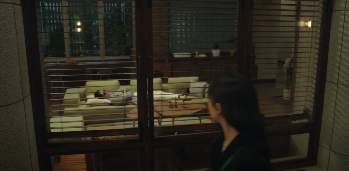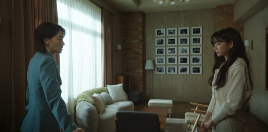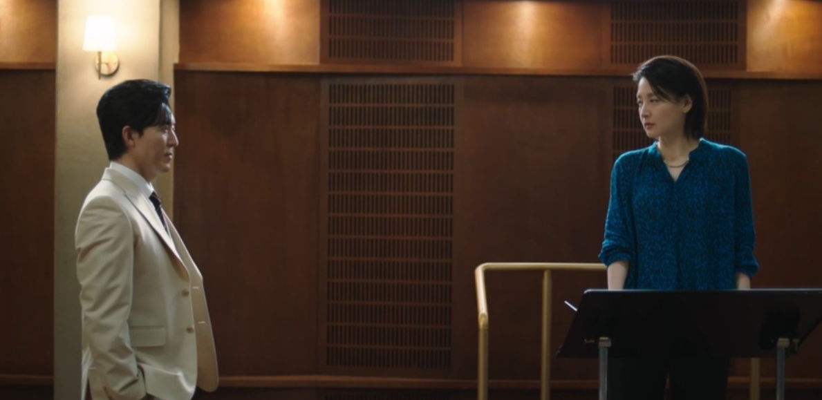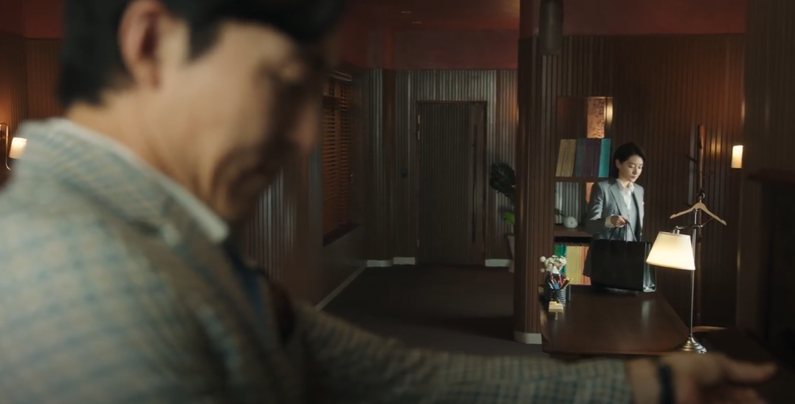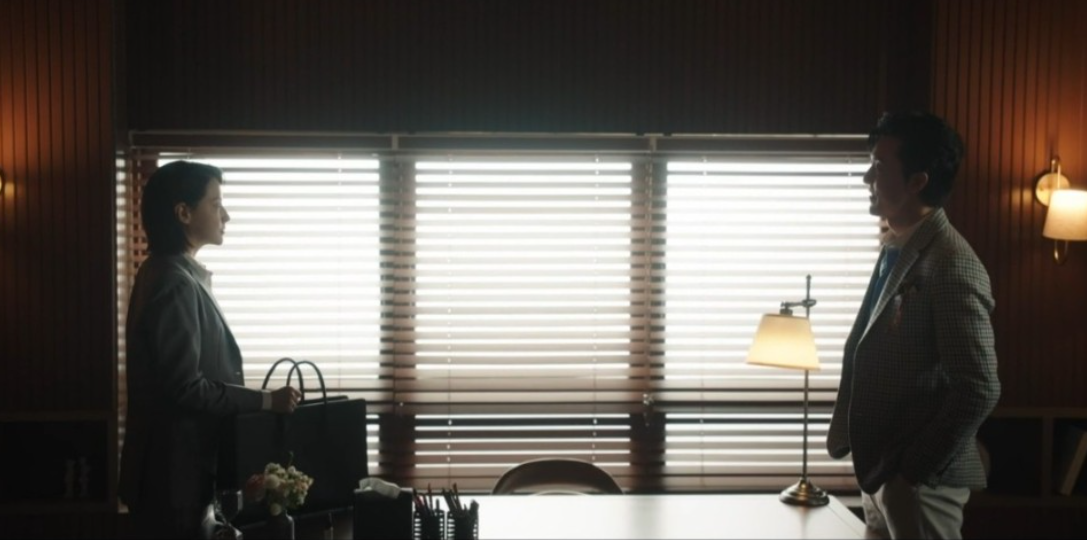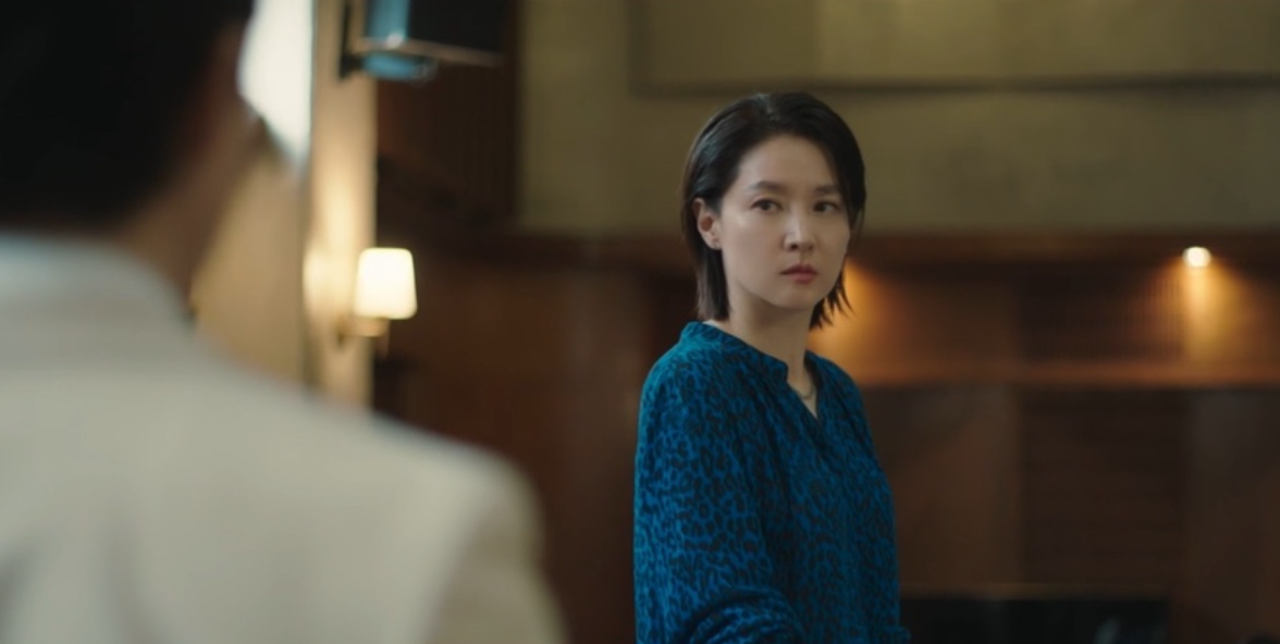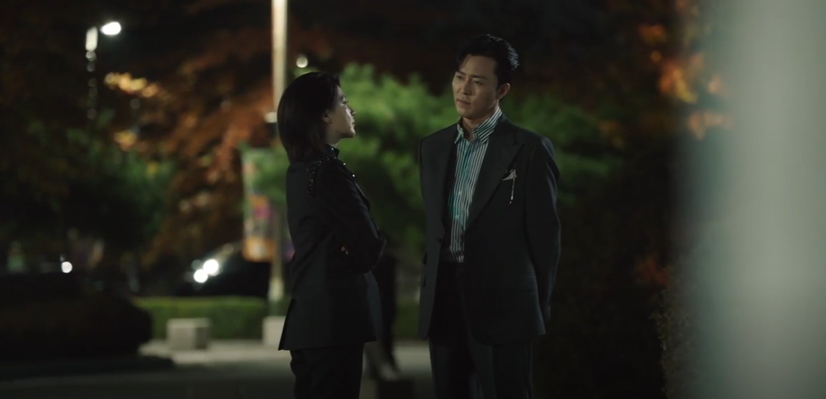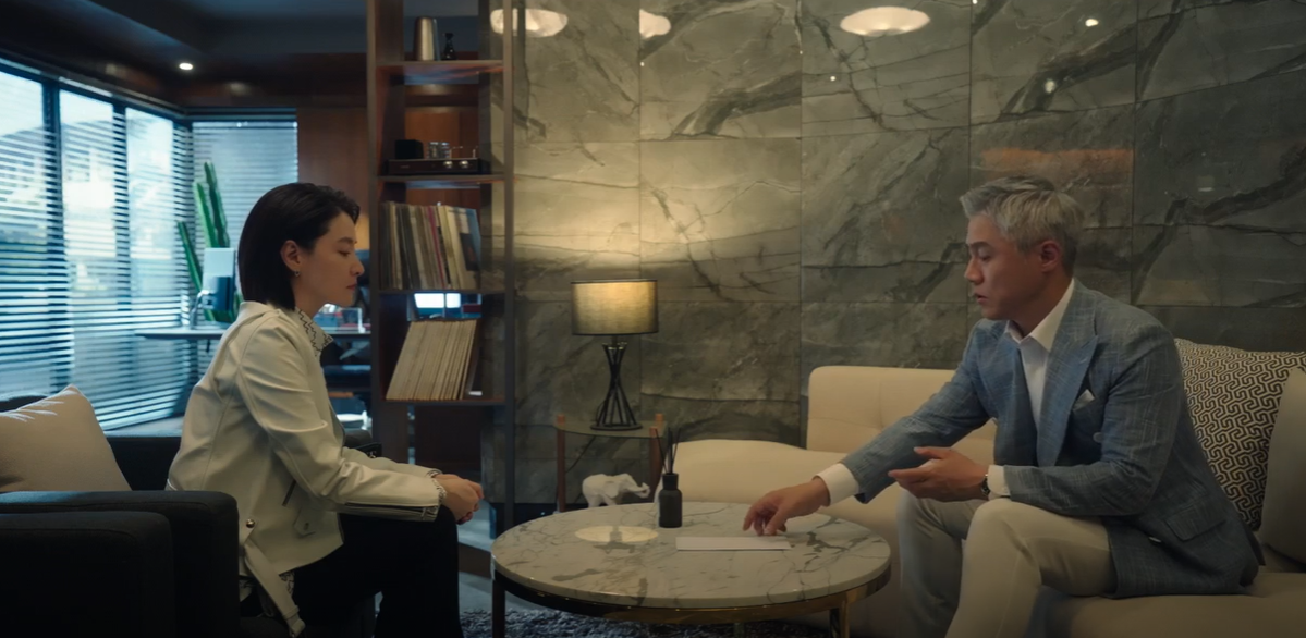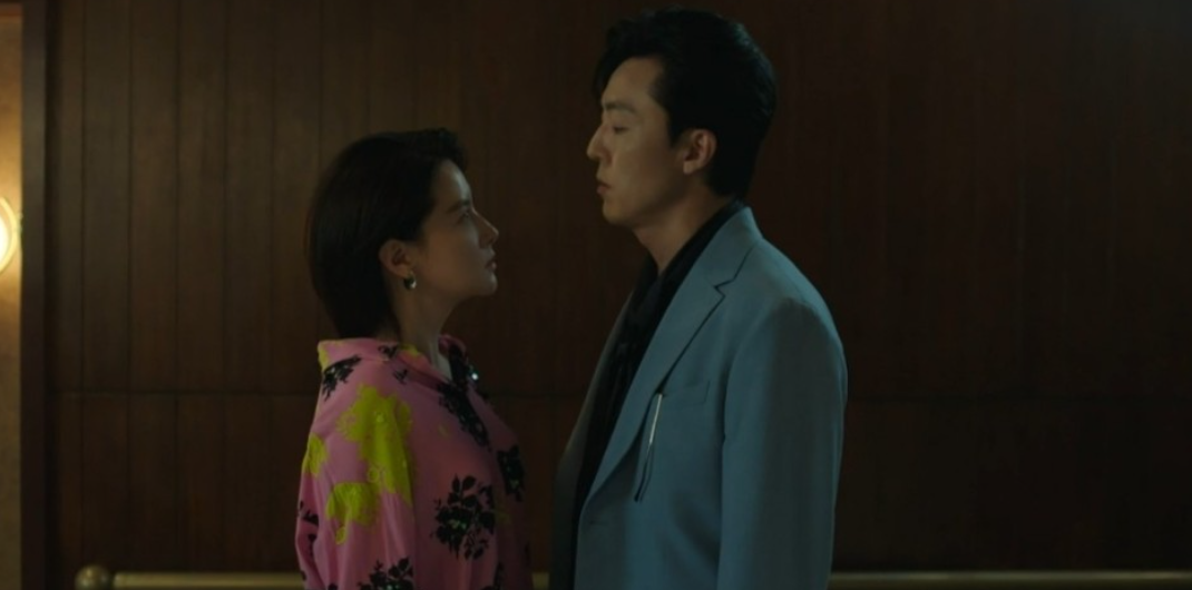 남편이 전화를 받으러 간 사이 유정재가 나타나고 차마에와 유정재는 살벌한 분위기로 대화를 나눕니다.