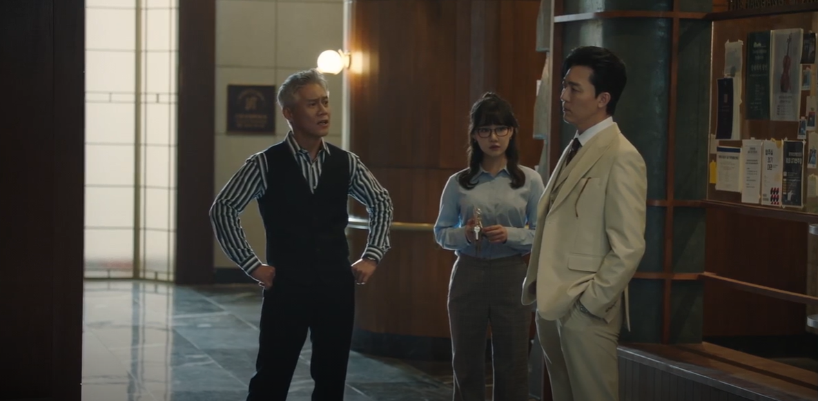 화재경보기 울림에 놀라서 나온 전대표를 따라서 결국 반강제로 연습실을 나와 사무실로 온 유정재. 대표에게 명함을 건내주니 그제서야 유정재가 한필의 회장임을 알고 태도를 공손히 합니다.