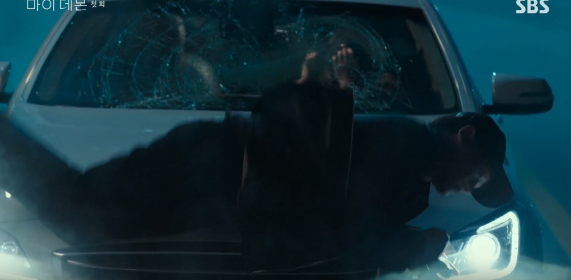 차가 멈추지 않자 구원 역시 당황한 순간 손에 힘이 풀려 도희를 놓치게 되고 물에 빠지는 도희를 구하려다가 둘이 함께 물에 빠지게 됩니다.