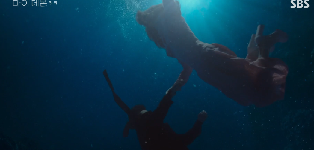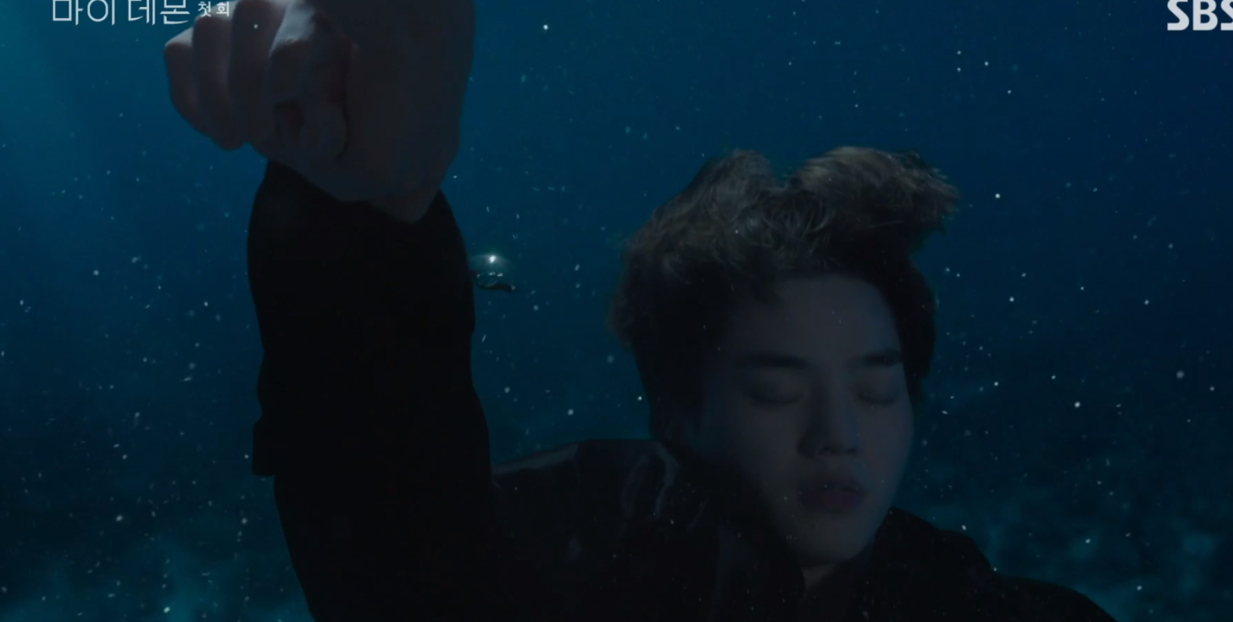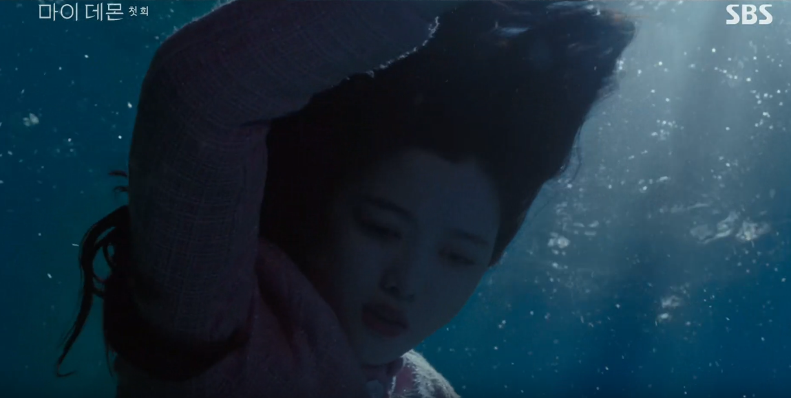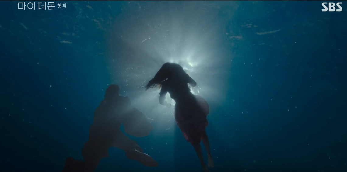 물 속에서 도희가 먼저 정신을 차리고 빠져나오려다가 가라앉는 구원을 보고 도희는 다시 잠수하여 구원의 손을 잡고 놓지 않습니다.