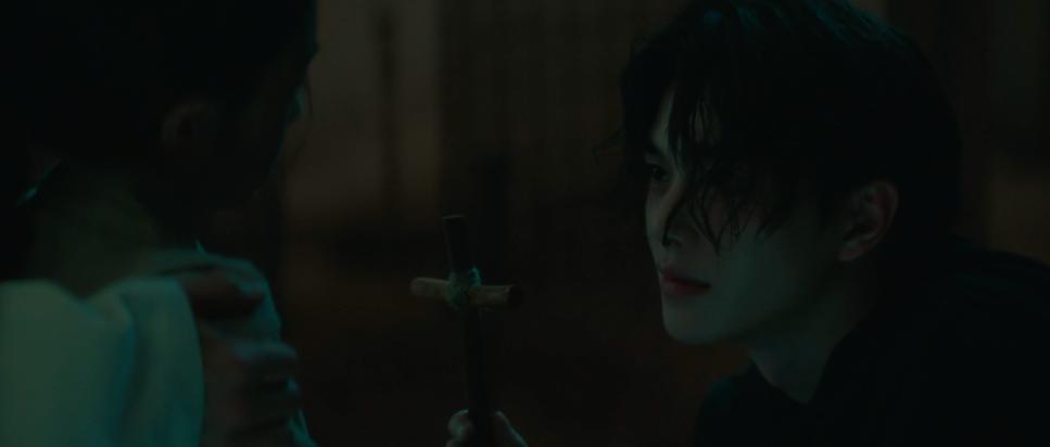 하지만 어린아이만은 데몬, 정구원이 무섭지 않은 듯 똑바로 쳐다보고 정구원은 아무말 없이 아이의 십자가를 주워 주고 나옵니다.