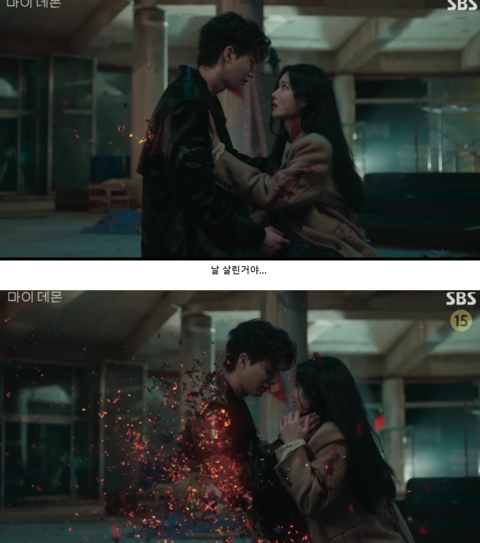 다시 의식을 찾고 깨어난 도희는 자연발화되어 소멸되어가는 구원을 눈앞에서 보게 되고 절규하면서 15회는 끝이 납니다.