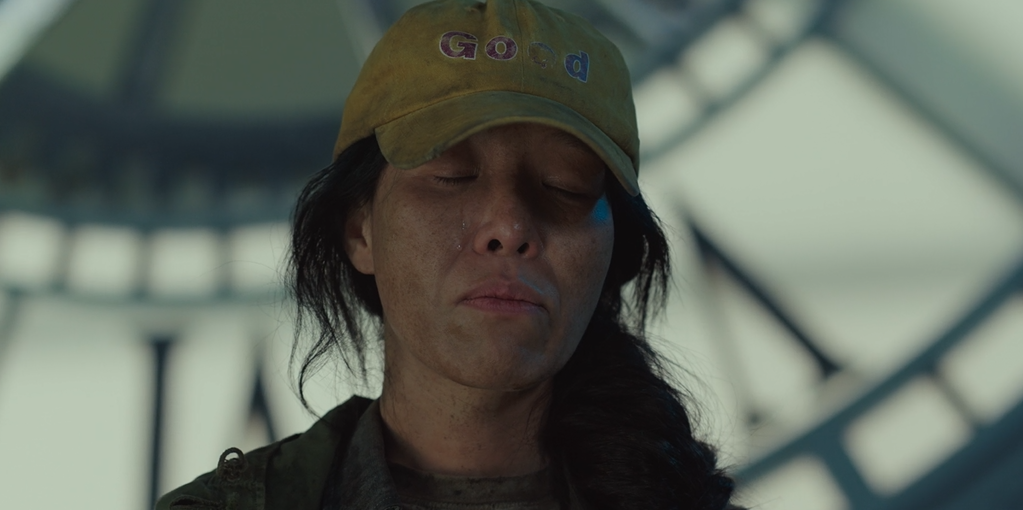 도희를 살리기 위해 자연발화를 선택한 정구원을 보고 눈물 흘리는 노숙녀. 신.