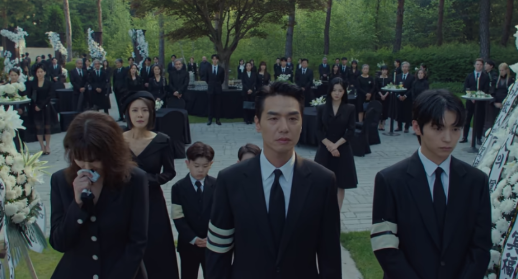 장례 중간에 형사가 와서 전할것이 있다며, 주여사의 사인을 이야기 하는데 주여사는 평소 알러지 때문에 먹지 않던 약을 먹고 부작용으로 심장마비가 와 죽은 상황. 형사는 약통의 라벨과 내용물이 달랐다며 단순 심장마비가 아님을 이야기 하지만 주여사의 아들, 딸들은 대수롭지 않은 듯 그냥 심장바미라고 하자며 장례식으로 향합니다.