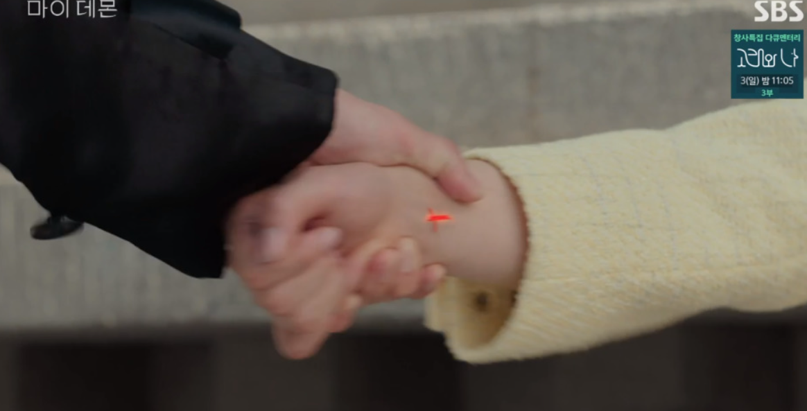 아이 엄마에게 고민할 시간도 주지 않고 몰아쳐 계약을 하는 구원의 손이 자연발화가 되고 있는 것을 본 도희는 그제서야 구원이 다급해서 경호원을 하겠다고 한 이유를 짐작합니다.