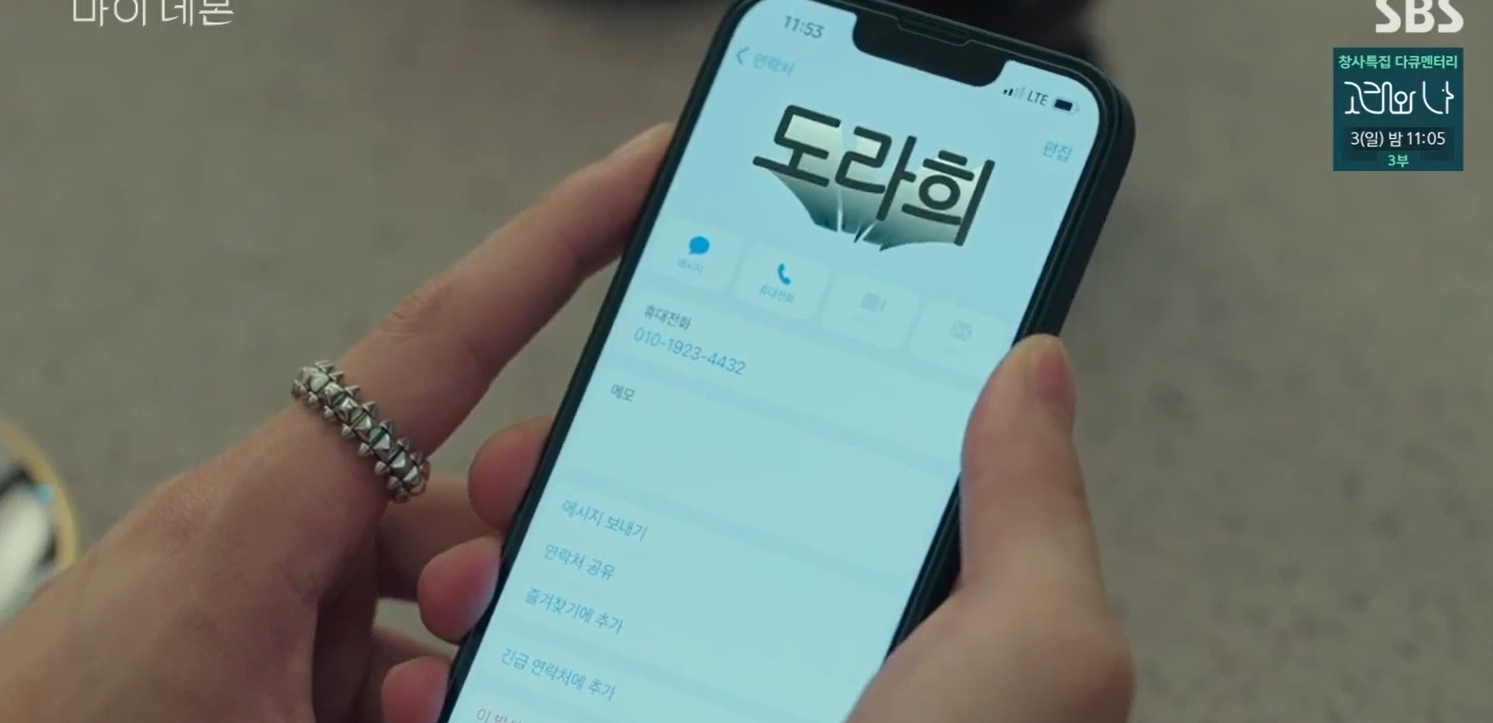 집에 도착한 도희는 구원이 경호원을 하도록 설득 ? 아닌 협박, 문신을 레이져로 지져 버리겠다면서 카톡을 보내고 화가난 구원은 도도희를 도라이라고 부르면서 핸드폰 저장 이름을 수정합니다.