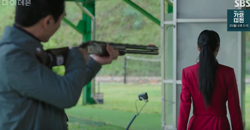 사격장에서 연습을 하고 있던 석민과 대립하는 도희. 가짜 뉴스라도 진실이 될수있다고 말하는 석민에게 화가난 도희가 과거 석민의 음주운전 뺑소니 사건을 들추며 자극 하자 도희를 향해 총을 겨누고 진짜로 방아쇠를 당깁니다.