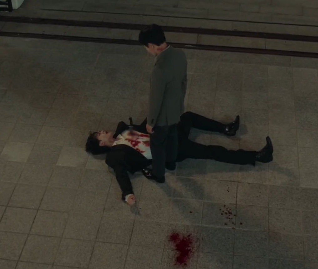 심장쪽에 찔린 칼을 웃는 얼굴로 밟으며 더 깊숙이 찌르려는 잔인한 범인. 싸이코 패스 ㅠ