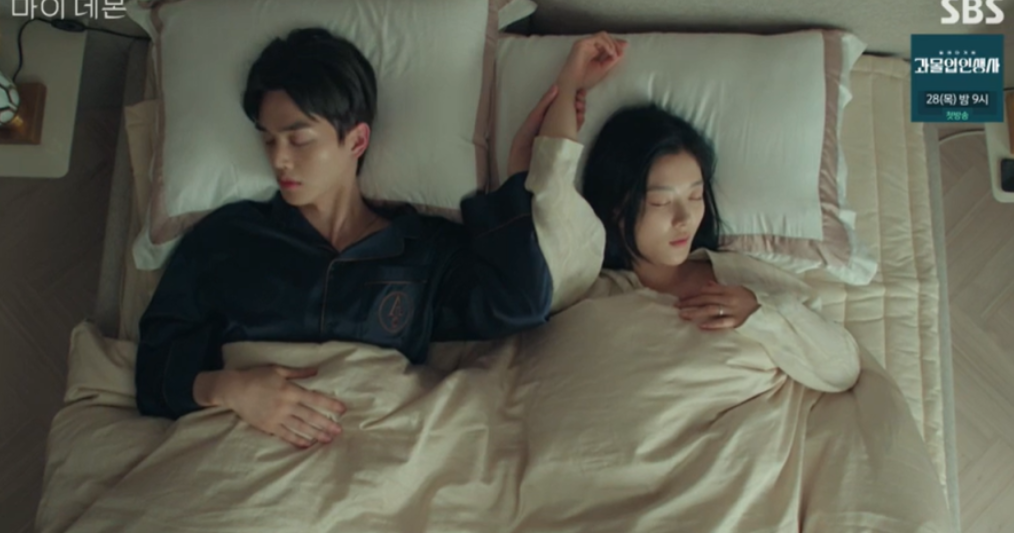 이후 하루 종일 못했으니 충전을 하자며 도희 손목을 잡고 누운 구원. 옆에 사람이 있으면 못자다던 도희도 잠들고 구원도 잠이 듭니다.