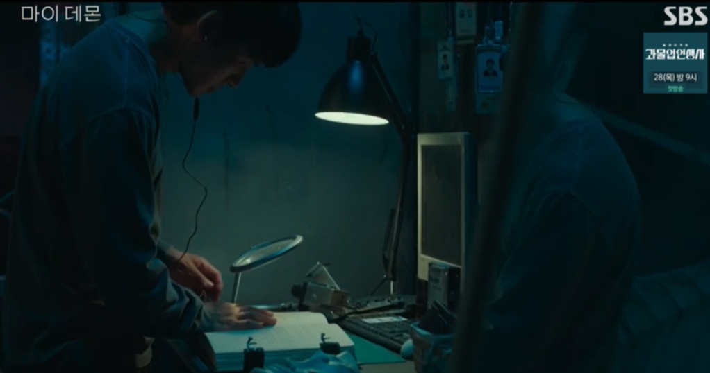 그사이 도희의 살인범 기광철은 정구원이 비운 집에 숨어들어 데몬설명서를 훔쳐갑니다.