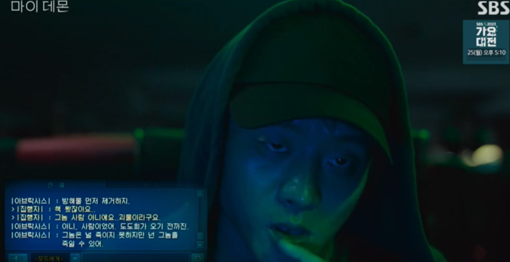 데몬 설명서를 손에 넣고 도청을 해서 구원의 약점을 알아낸 범인. 집행자인 범인을 조정하는 아브락시스는 정구원을 죽여서 범인에게 직접 악마가 되라고 부추깁니다.