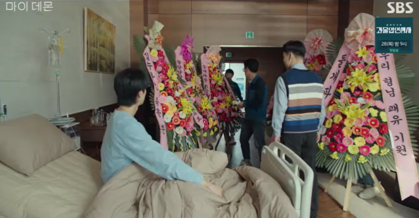 기다리는 도희는 안오고 난데없이 들어오는 화환들. 들개파들이 구원의 소식을 듣고 병문안을 왔습니다.