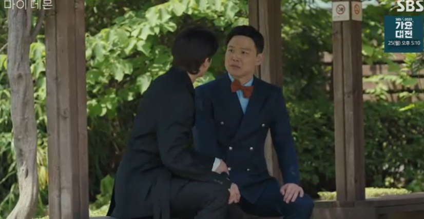 마이 데몬 | 이상이(주석훈)는 송강(정구원)에게 김유정(도도희)의 속마음에 대해 이야기한다. Copyright ⓒ SBS. All rights reserved. 무단 전재, 재배포 및 AI학습 이용 금지