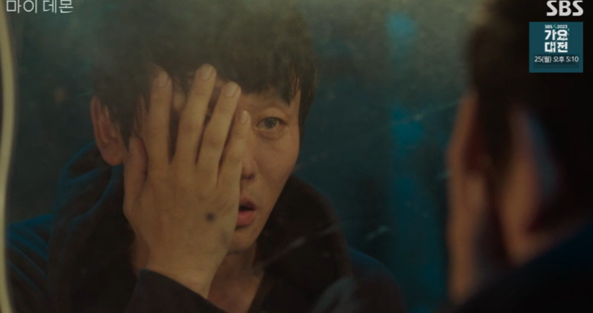 데몬 설명서에서 나온대로 데몬을 소멸시키기 위해 칼로 심장을 찌른 후 심장을 반으로 쪼개려고 칼을 밟아 깊숙히 찔러 넣으려는 기광철을 박복규가 발견하고 몸을 던져 막아냅니다.  가면의 반쪽이 찢어져 얼굴이 노출된 기광철은 놀라서 도망가고 박복규는 정구원을 살리기 위해 지혈을 합니다.