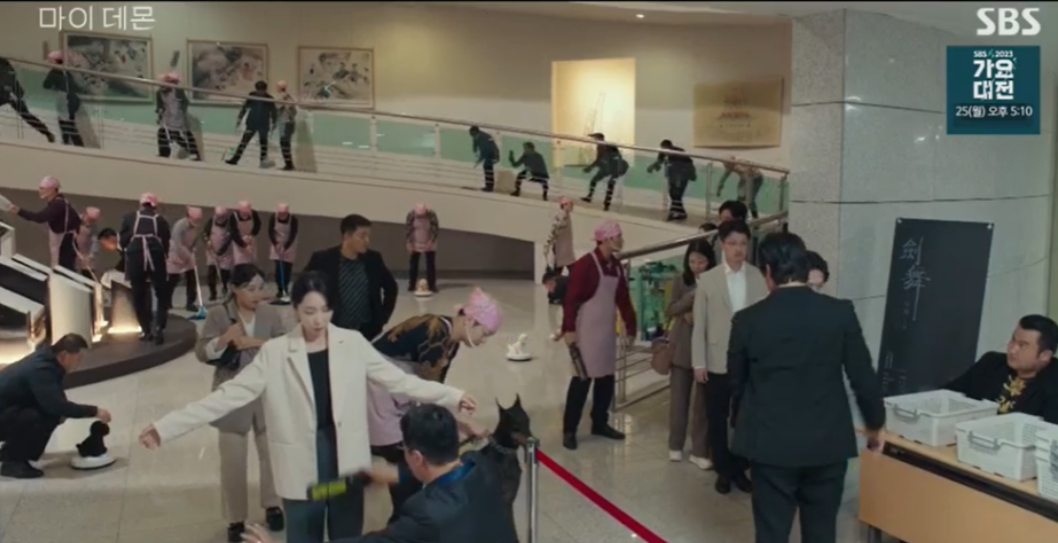 마침 부르지도 않은 들개파조직원들이 오늘도 선재아트센터에 와서 청소를 한다며 난리법석이고 박실장은 구원에게 전화해 빨리와서 들개파를 치워달라고 부탁합니다.