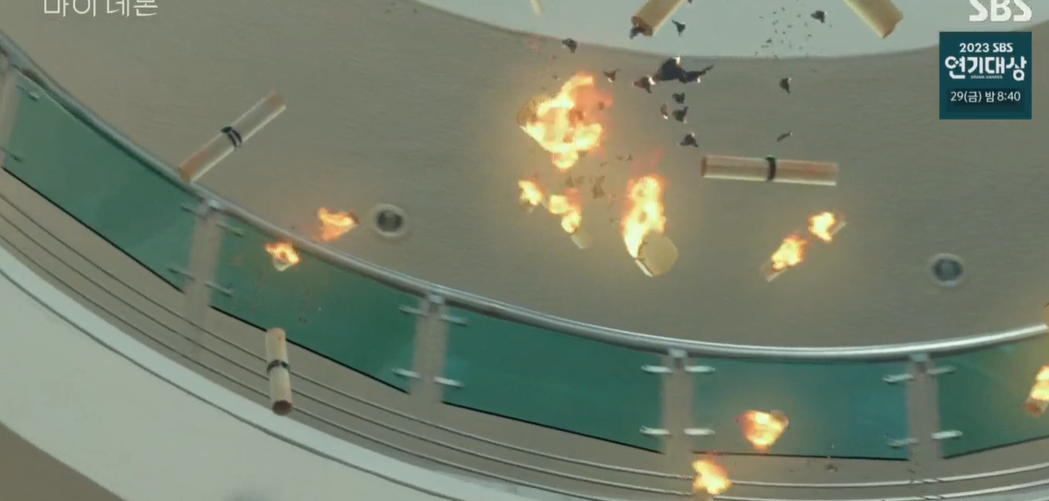 놀란 기광철이 분장실로 도망가자 노석민은 밖에서 문을 잠그고 불을 질러 버립니다.