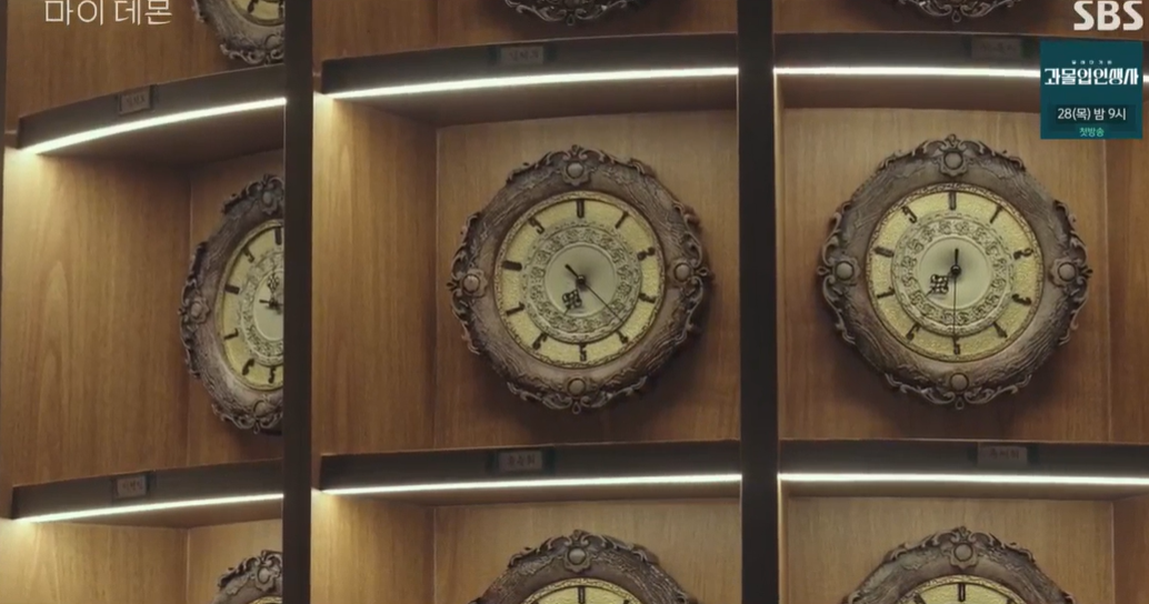선월재단 사무실에서 도청장치를 발견하고 박실장과 이야기 하던중 구원은 사람들과 계약을 맺으면서 보관했던 시계가 멈추었음을 발견하게 됩니다. 그리고 멈춰버린 시계를 보면서 자신이 사람들과 계약을 해 데몬으로 영생을 누리고 있었는데 그 능력이 사라졌음을 깨닫습니다.
