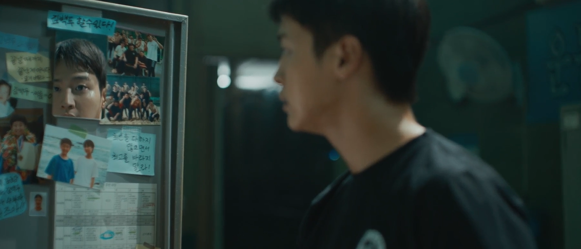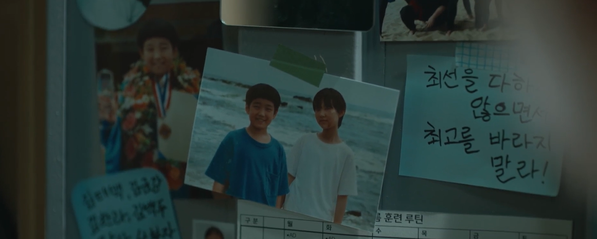 다른사람들 마주치는 것이 불편한 백두는 조용히 락커룸에가 짐을 챙깁니다. 추억이  깃든 락커안에는 어질적 두시관 백두의 사진이 한가운데 붙어 있습니다.