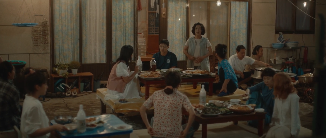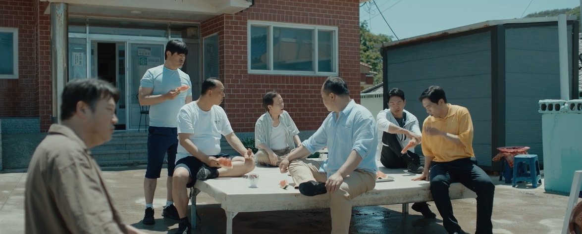 마침 반상회 음식준비를 하던 형들을 통해 소식을 듣고 동네 여자들이 모두 온다는 반상회에 유경을 기다리며 두식도 껴서 앉아 있습니다.