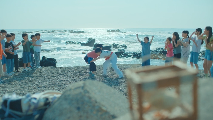 샅바 잡고 서자마자 순식간에 아빠한테 기술당하고 뻗은 백두. 태백은 백두에게  다시 일어나라고 제대로 하라고 하지만 몇번을 해도 아빠한테 상대가 되지 않고 금방 엎어치기 당해  백두는 바닥에 패대기 쳐집니다.