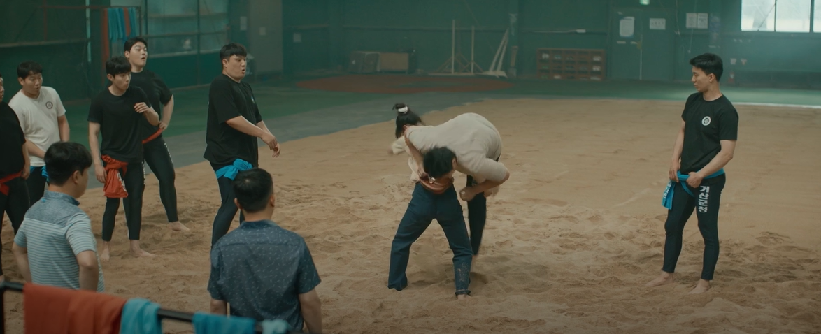 짐을 가지고 나라려다가 씨름단 총괄 관리자로 오게된 유경을 보게된 백두. 다른 선수들은 씨름도 모르는 사람이 매니저로 왔다며 얕잡아 보는데.. 그러면 두식이 한데 박치기 당할 수도 있다며 두식은 후배들을 걱정하는 마음으로 몰래 지켜보고 있습니다.