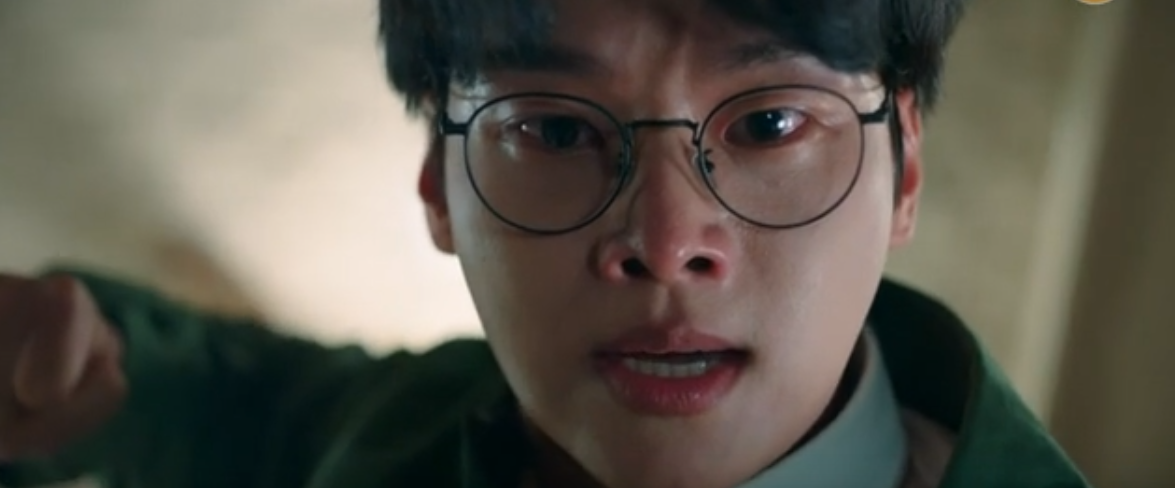 상두를 보자마자 흥분한 봉완이 상두에게 달려들며 폭력을 휘두르려고 하자  봉완은 이를 말리려던  목하까지 밀쳐버리는데, 목하를 보호하려고 우학이 달려들고 대신 어깨를 부딪혀 다치게 됩니다.