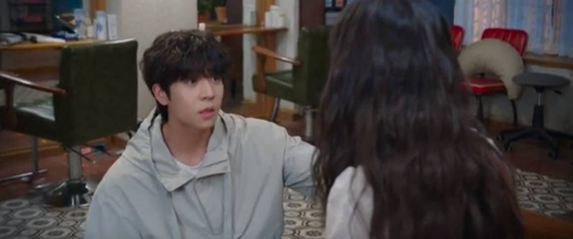 도착해서 난장판이 된 미용실을 둘러보며 보걸은 목하가 괜찮은지 확인합니다.
