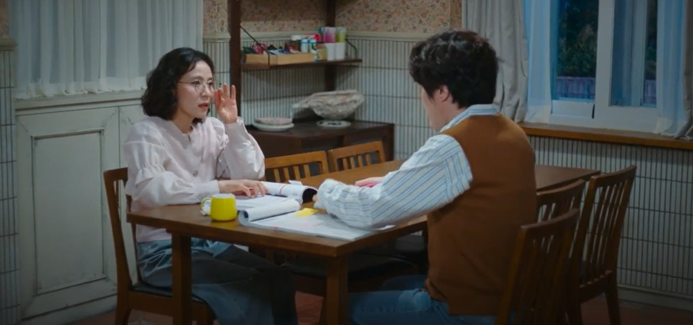 이름이 바뀌어 기존의 자격증의 효력을 유지시키려면 행정소송을 해야 해서 차라리 새이름으로 자격증을 다시 따기 위해 열공중인 하정과 상두.