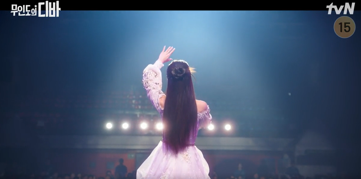 이제 바로 다음 순서. 떨려하는 목하를 보며 란주는 은모래는 계속 1위하고 있는데 이렇게 작은 무대하나 서면서 떨려하는 목하가 걱정스럽다고 하는데 목하가 무인도에서 배웠던 것으로 답을 합니다. 무인도에서 뭐먹고 살까 여기서 나갈수 는 있을까 하는 의문과 걱정에 압도되어 죽고 싶은 날도 있었지만 어느날 햇살에 너무 아름다워 잠시 5분동안 걱정을 잊게 되었고, 그 다음엔 갈매기 때문에 50분 , 그 다음엔 쓰레기때문에 5시간.. 그렇게 답이 없는 질문대신 다른걸로 그 시간을 채워가면서 하루하루 버티니까 드론이 왔다는 이야기를 합니다.