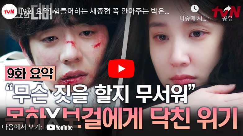 문자를 확인하고 가게에 가서 기다던 보걸은 무언가 이상하다는 생각이 든 듯 미용실 CCTV를 확인하고는 미용실을 찾은 봉완과 겁에 질려있는 엄마와 목하를 보면서 9회는 끝이 납니다.