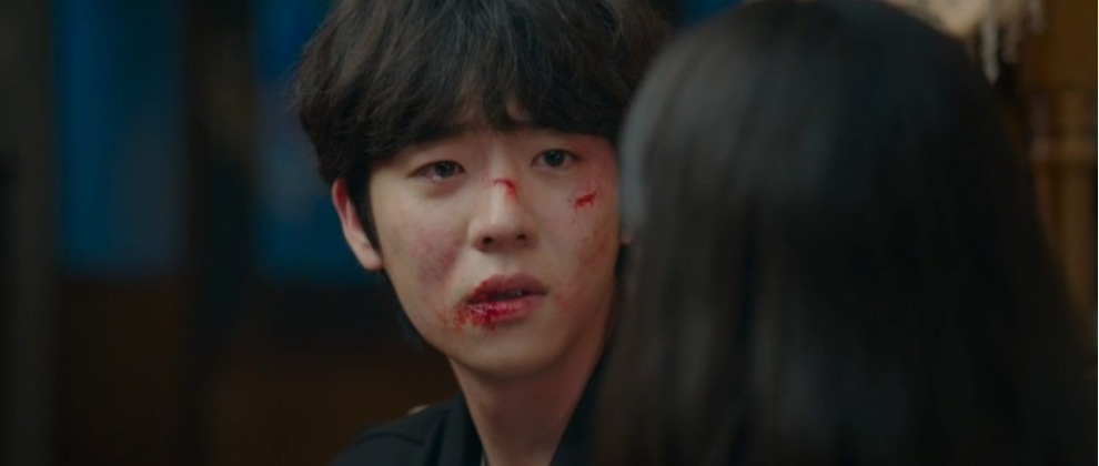 집으로 돌아오다가 편의점에 들러서 수습을 하던 보걸은 우연히 우학을 만나고 얼굴 상처를 보고 걱정하는 우학에게 회식때문에 술취해서 계단에서 굴렀다고 둘러댑니다. 형에게 차를 테워달라고 하고 함께 돌아오는 길에 둘은 길에서 팬들과 실랑이를 붙은 목하를 발견하고 도와줍니다.