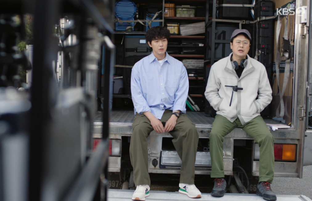 두 배우들의 싸움에 지친 두사람. 필승이 봉수와 도라를 각각 잘 달랜 덕분에 분위기가 풀리고, 지친 선배 감독은 필승에게 고마워 합니다.