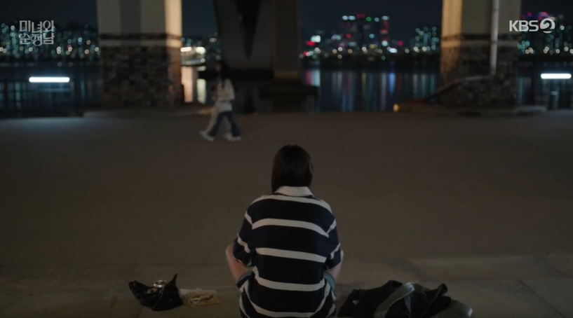 알고보니 취객이 바로 도식. 알아보고 놀란 동명과 달리 만취상태인 도식은 명동을 주희로 착각하고 와줄줄 알았다며 껴안습니다. 명동은 시련당해 주희로 착각하고 자신에게 와줄줄 알았다며 반가워하는 도식에게 자신이 같이 있어주겠다며 위로해 줍니다.
