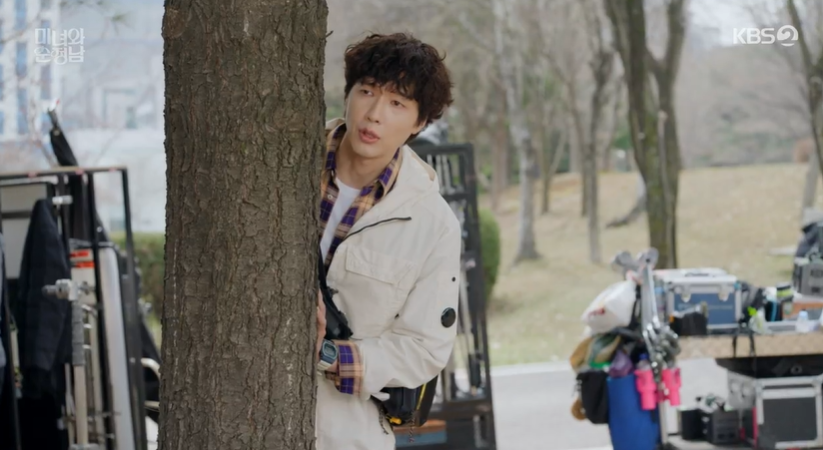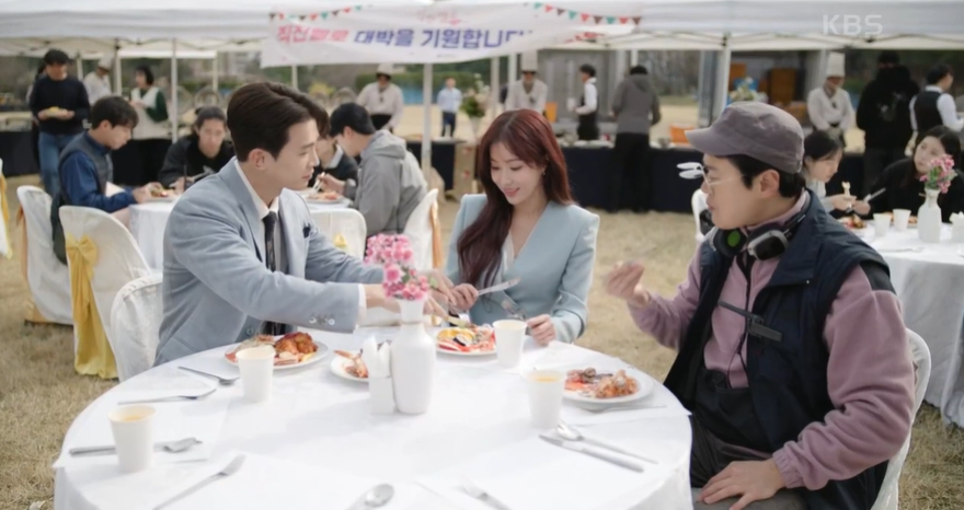 그 모습을 멀리서 지켜보던 홍감독은 필승에게 공진단이 신인배우 킬러로 바람둥이라고 이야기 해주고, 필승은 도라를 걱정합니다.