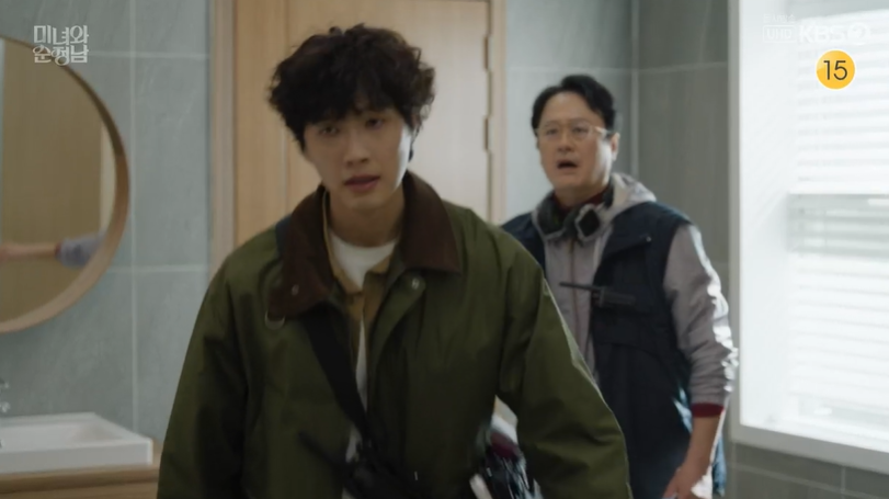 진단은 술취한 도라를 집까지 데려다 주고, 마침 도라에게 사과를 하려고 집에 찾아온 필승은  그 모습을 보게 됩니다.
