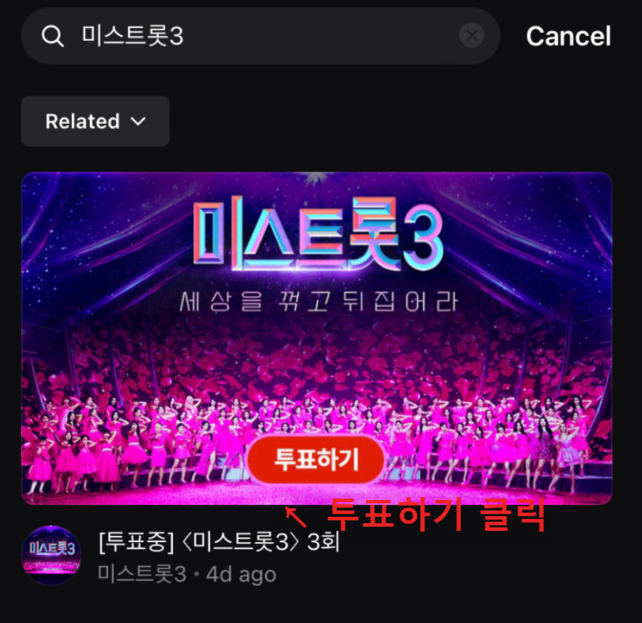 ▶ 앱 설치가 완료하신 후 네이버 아이디를 이용하여 Now 앱에 로그인 → 미스트롯3 검색 → 투표하기 영상클릭 → 영상에 나오는 투표하기 (POLL)터치 → 미스트롯 참가자 사진이 나오면 터치하여 7명 선택 → 투표완료!!!